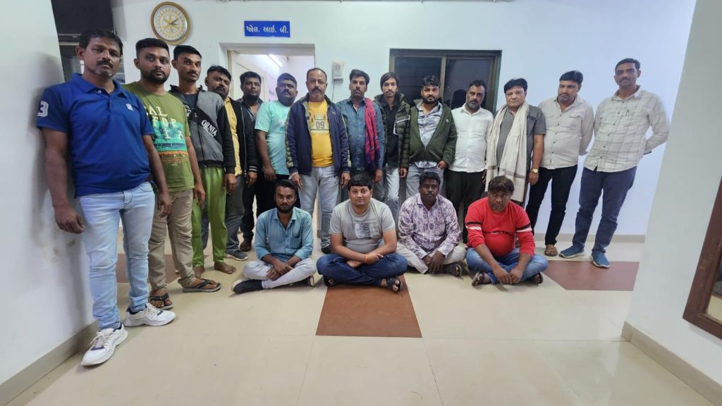 મળતી વિગતો મુજબ મોરબી જીલ્લા પોલીસવડા રાહુલ ત્રિપાઠી, વાંકાનેર ડીવાયએસપી સારડા અને મોરબી વિભાગના ડીવાયએસપી પી. એ. ઝાલાની સુચના અનુસાર મોરબી જીલ્લામાં ચાલતી દારૂ – જુગારની અસામાજીક પ્રવૃતિઓને નાબુદ કરવા દરેક પોલીસ મથકમાં સુચના આપી હોય એ દરમિયાન હળવદ પોલીસ મથકના પીઆઇ આર. ટી. વ્યાસ, હેડ કોન્સ. દિનેશભાઇ બાવળીયા, દેવેન્દ્રસિંહ ઝાલા, મનહરભાઇ સદાદીયા, યુવરાજસિંહ જાડેજા, મનોજભાઇ પટેલ સહિતના સ્ટાફે બાતમીના આધારે હળવદ રોડ પર આવેલ લેકવ્યુ ગેસ્ટ હાઉસમાં જુગાર રમાતો હોવાની બાતમી મળતા પોલીસ કાફલો તુરંત ગેસ્ટ હાઉસ પર પહોંચી ગયો હતો અને દરોડો પાડી જુગાર રમતા હળવદના ભરત હરખા વઢરેકીયા, અલાઉદીન મહમદ ચૌહાણ, મહેબુબ નથુ સિપાઇ, જાકીર દાઉદ ચૌહાણ, મોહસીન હબીબ ચૌહાણ, ઇરફાન યુનુસ રાઠોડ, દિવ્યેશ કિશોર જેઠલોજા, વલ્લભ સુંદરજી પટેલ, રસીદ જુમા ચૌહાણ, ફૈયાજ યાકુબ ભટ્ટી, શબીર જુસક ચૌહાણ, તોહીદ અજીત ચૌહાણ, રજાક અકબર ભટ્ટી, જાવીદ અબ્દુલ ચૌહાણ, ઇમરાન હનીફ ભટ્ટી, સિરાજ સલેમાન કયડા, અસલમ સલીમ ચાનીયા અને સલીમ જુમા ચૌહાણની ધરપકડ કરી 2 લાખનો મુદામાલ કબજે કરવામાં આવ્યો હતો. આરોપીઓ દ્વારા ઘોડીપાસાની કલબ કેટલા સમયથી ચલાવવામાં આવતી હતી ? તે અંગે હાલ તમામની પુછપરછ કરવામાં આવશે.
