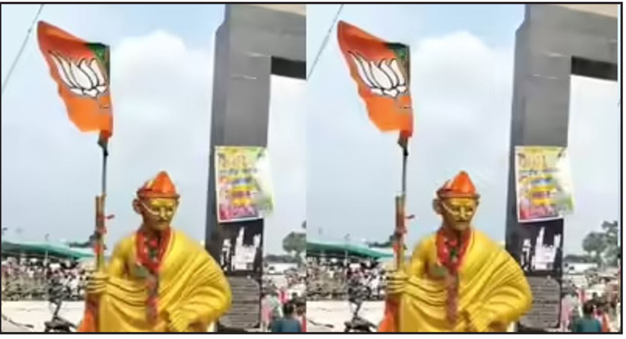 બિહારના મુઝફ્ફરપુરમાં એનડીએ કાર્યકર સંમેલન દરમિયાન મહાત્મા ગાંધીની પ્રતિમાને ભાજપને ટોપી પહેરાવામાં આવી છે. તેમજ કમળનું નિશાન ધરાવતો પક્ષનો ઝંડો પણ હાથમાં આપવામાં આવ્યો છે. સંમેલનમાં શાહનવાઝ હુસૈન, જેડીયુ કાર્યકર અધ્યક્ષ સંજય જ્હાં સહિત એનડીએના અનેક ધારાસભ્ય અને સાંસદ ઉપસ્થિત હતા. ફોટો વાઈરલ થયા બાદ રાજકારણમાં ખળભળાટ મચ્યો છે. વિપક્ષ કોંગ્રેસ પાર્ટી અને આરજેડીએ ભાજપના આ કૃત્યને ગાંધી બાપુનું અપમાન ગણાવી મોરચો છેડ્યો છે. તેમજ બાપુની પ્રતિમાને ગંગાજળથી સાફ કરી હતી.