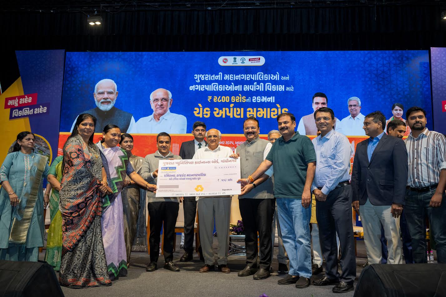 ગુજરાત સરકારના શહેરી વિકાસ અને શહેરી ગૃહ નિર્માણ વિભાગ દ્વારા રાજ્યની નગરપાલિકાઓ તથા મહાનગર પાલિકાઓના શહેરી વિકાસના કામો માટે મુખ્યમંત્રીના વરદ્દ હસ્તે ચેક વિતરણ કાર્યક્રમનું આયોજન કરવામાં આવેલ. જે અંતર્ગત રાજ્યની નગરપાલિકા/મહાનગર પાલિકાઓને શહેરી વિકાસના કામો માટે તા.17/12/2025, બુધવારના રોજ મુખ્યમંત્રીના વરદ્દ હસ્તે રૂૂ.2800 કરોડના ગ્રાંટના ચેક વિતરણ કરવાના કાર્યક્રમનું ઔડા ઓડિટોરિયમ, શેલા, અમદાવાદ ખાતે આયોજન કરવામાં આવેલ હતો.