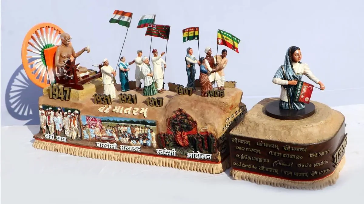 ’વંદે માતરમ’ ગીતની 150-મી વર્ષગાંઠના ઉપલક્ષમાં આ વિષયના પ્રતિઘોષરૂૂપે ’વંદે માતરમ’ શબ્દની પૃષ્ઠભૂમિથી જ શરુ થયેલી ભારતીય રાષ્ટ્રધ્વજની નિર્માણયાત્રા, તેની બદલાતી તાસીર અને તવારિખની રોચક પ્રસ્તુતિ 77-મા પ્રજાસત્તાક પર્વમાં ગુજરાતના ટેબ્લોનું મુખ્ય આકર્ષણ છે. આ સાથે ગુજરાતના ક્રાંતીવીરો શ્યામજી કૃષ્ણ વર્મા અને સરદારસિંહ રાણાની સાથે વિદેશની ભુમિ પરથી ક્રાંતિજયોત જગાવનારા મેડમ ભિખાઇજી કામાએ તૈયાર કરેલા ’વંદેમાતરમ’ લિખિત ધ્વજની યશોગાથાનું વર્ણન ‘ચરખા’ના માધ્યમથી સ્વદેશીનો મંત્ર આપનાર મહાત્માગાંધીની સ્મૃતિ સાથે સવર્તમાન ‘આત્મનિર્ભર’ અભિયાનનો સમન્વય આ ટેબ્લોની અનોખી ભાત ઉભી કરે છે.