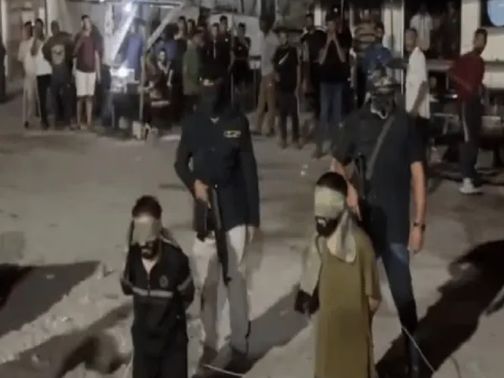 ઇઝરાયલી હુમલાઓ અને વિનાશક કૃત્યોની શ્રેણી વચ્ચે, લોકોના સૂત્રોચ્ચાર વચ્ચે માસ્ક પહેરેલા હમાસના આતંકવાદીઓએ ત્રણ પેલેસ્ટિનિયનોને ફાંસી આપી. આરોપ છે કે ત્રણ પેલેસ્ટિનિયન નાગરિકો ગાઝામાં ઇઝરાયલી અભિયાનને ટેકો આપી રહ્યા હતા. ન્યૂ યોર્ક પોસ્ટ અનુસાર, હત્યાના ભયાનક ફૂટેજ, જે મૂળરૂૂપે હમાસ સાથે જોડાયેલા ટેલિગ્રામ ગ્રુપ પર પોસ્ટ કરવામાં આવ્યા હતા, તેમાં ત્રણ આંખો પર પાટા બાંધેલા માણસો જમીન પર ઘૂંટણિયે બેઠેલા દેખાય છે, અને ત્રણ હમાસ બંદૂકધારીઓ તેમની સામે ઓટોમેટિક હથિયારો પકડીને બેઠા છે, જ્યારે ચોથો માણસ અરબીમાં કાગળના ટુકડામાંથી મોટેથી વાંચે છે.