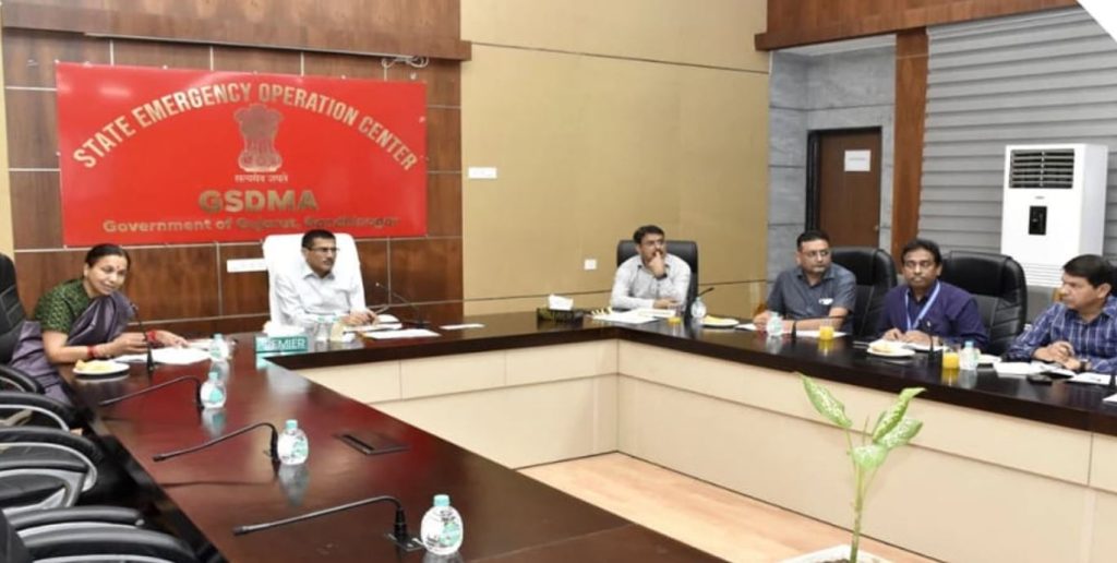 આ બેઠકમાં મહેસૂલ વિભાગના અધિક મુખ્ય સચિવ ડો. જયંતિ રવી તેમજ રાહત કમિશનર અલોકકુમાર પાંડે દ્વારા પશુપાલન, ઊર્જા, કૃષિ, ઈઠઈ, માર્ગ અને મકાન, આરોગ્ય અને પરિવાર કલ્યાણ, પંચાયત, શહેરી વિકાસ, સિંચાઈ, સરદાર સરોવર નિગમ અમે ગઉછઋ સહિતના સંબંધિત વિભાગોને તેમજ સંબંધિત જિલ્લા વહીવટી તંત્રને વિવિધ સૂચનો કરી, તકેદારી રાખવા જણાવ્યું હતું.