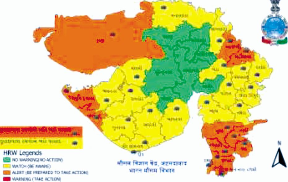 આવતીકાલે સવારે 8 વાગ્યા સુધી નવસારી, વલસાડ, દમણ, અરવલ્લી, મહીસાગર, સુરત, ડાંગ, તાપી અને સૌરાષ્ટ્રના પોરબંદર, દ્વારકા અને કચ્છ જિલ્લામાં ભારેથી અતિ ભારે વરસાદની આગાહી વ્યકત કરાઇ છે. 7 તારીખ માટે નવસારી, વલસાડ અને દમણ, દાદરા નગર હવેલી વગેરે જિલ્લાઓમાં છુટાછવાયા સ્થળોએ ભારેથી અતિભારે વરસાદની શકયતાઓ છે. તેમજ સૌરાષ્ટ્રના ભાવનગર અને અમરેલી જિલ્લામાં ભારેથી અતિભારે વરસાદની સંભાવના વ્યકત કરાઇ છે ત્યારબાદ મોટા ભાગના જિલ્લાઓમાં 12 જુલાઇ સુધીમાં ભારે વરસાદની આગાહી વ્યકત કરાઇ છે. હાલમાં સિનોસ્પીટક સિચ્યુએશન જોતા સરેરાશ દરિયાઈ સપાટી પરનો ચોમાસુ પ્રવાહ હવે શ્રી ગંગાનગર, ભિવાની, આગ્રા, બાંદા, દેહરી, પુરુલિયા, કોલકાતા અને ત્યાંથી પૂર્વ દક્ષિણપૂર્વ તરફ ઉત્તરપૂર્વ બંગાળની ખાડીમાં પસાર થાય છે.