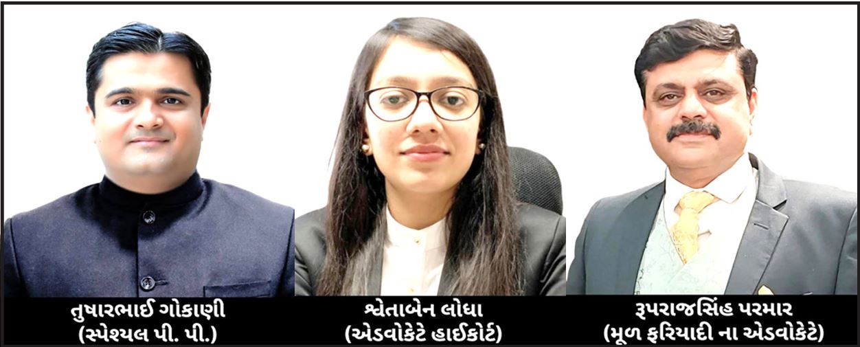 આ કેસમાં રાજકોટ સેશન્સ કોર્ટમાં સરકાર તરફે સ્પે. પીપી તુષારભાઇ ગોકાણી, મુળ ફરિયાદીના ધારાશાસ્ત્રી રૂૂપરાજસિંહ પરમાર, અજીતભાઈ પરમાર, હુસૈનભાઈ હેરંજા, જયદેવસિંહ ઝાલા, પાર્થરાજસિંહ ઝાલા, રવિભાઈ લાલ, જીતભાઈ શાહ, દિપકભાઇ ભાટિયા, અંકિતભાઈ ભટ્ટ, રહિમભાઈ હેરંજા તથા પ્રેમરાજસિંહ પરમાર તેમજ ગુજરાત હાઇકોર્ટમાં વકીલ શ્વેતાબેન લોધા રોકાયા હતા.