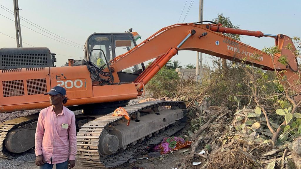 તે સમયે ત્યાંથી પસાર થઈ રહેલી બે મહિલાઓ એકાએક હિટાચી મશીન નીચે દબાઈ હતી. જેમાં ઢીંચડા રોડ પર રહેતી અને મજૂરી કામ કરતી મધુબેન નારણભાઈ સુરડીયા નામની 55 વર્ષની પ્રૌઢ મહિલા, કે જે રિવર્સમાં આવી રહેલા હીટાચી મશીન નીચે દબાઈ જવાથી તેણીનું ઘટના સ્થળેજ કરુણ મૃત્યુ નીપજ્યું હતું. હિટાચી મશીનની નીચે દબાઈ જવાના કારણે તેના દેહનો છુંદો નીકળી ગયો હતો, અને ભારે બીહામણાં દ્રશ્ય સર્જાયા હતા.