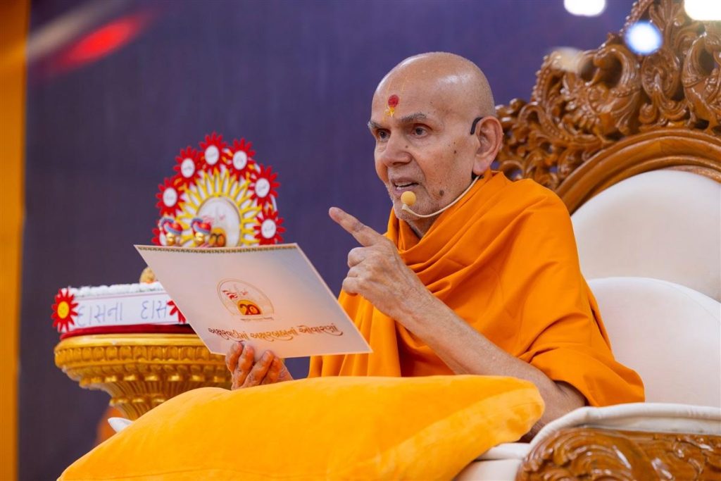 પરમ પૂજ્ય મહંત સ્વામિ મહારાજે પોતાના આશીર્વાદમાં જણાવ્યું હતું કે,’ રોજ નિયમિત રીતે બધાનાં અનુકૂળ સમયે ભેગા બેસીને ઘરસભા કરવી, પરમ પૂજ્ય પ્રમુખ સ્વામિ મહારાજ ની પ્રેરણાથી સૌએ ઘરસભા કરવી જોઈએ, જેથી પરિવારમાં સંપ, સુહૃદયભાવ અને એકતા સ્થપાય, એક બીજા પ્રત્યેને અણસમજણ રૂૂપી કચરો દૂર થઇ એકબીજા પ્રત્યે સંપની ભાવના જાગૃત થશે અને એકતા થશે. ઘરસભામાં સદ્શાસ્ત્રોનું વાંચન કરવાથી એકબીજાનાં દોષો દૂર થઈને પારિવારિક અને આધ્યાત્મિક શાંતિ થશે ’ આજે સાંજની સભા સદભાવી હરિભક્તોનાં વિશેષ કાર્યક્રમો હોય બાળકો અને યુવકો દ્વારા વિવિધ સંવાદો અને નૃત્યોની પ્રસ્તુતિ થઇ હતી.