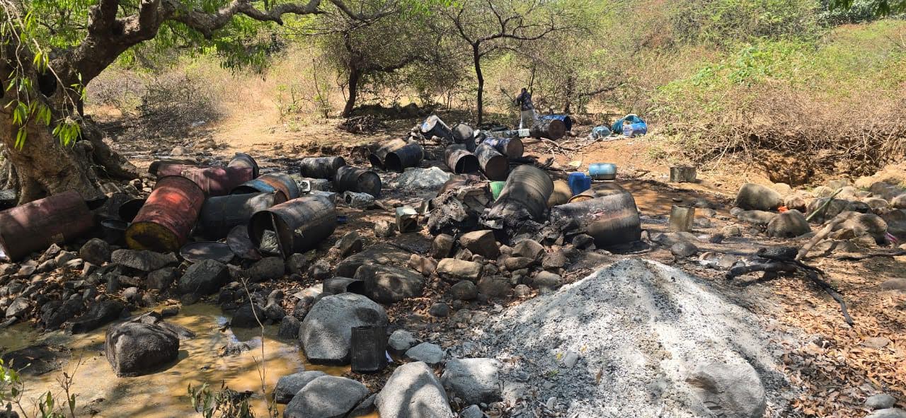 દેવભૂમિ દ્વારકા જિલ્લાના ભાણવડ પંથકમાં દેશી દારૂૂની પ્રવૃત્તિ માટે કુખ્યાત બની ગયેલા બરડા ડુંગર વિસ્તારમાં તત્વો દ્વારા કરવામાં આવેલી આવી રહેલી દેશી દારૂૂની પ્રવૃત્તિ સંદર્ભે દેવભૂમિ દ્વારકા જિલ્લા પોલીસ વડા નિતેશ પાંડેય તેમજ ડીવાયએસપી હાર્દિક પ્રજાપતિની સૂચના મુજબ ભાણવડ પોલીસ મથકના ઇન્ચાર્જ પી.આઈ. કે.કે. મારુ દ્વારા પ્રોહીબિશન અંગેની કાર્યવાહી કરવામાં આવી હતી.