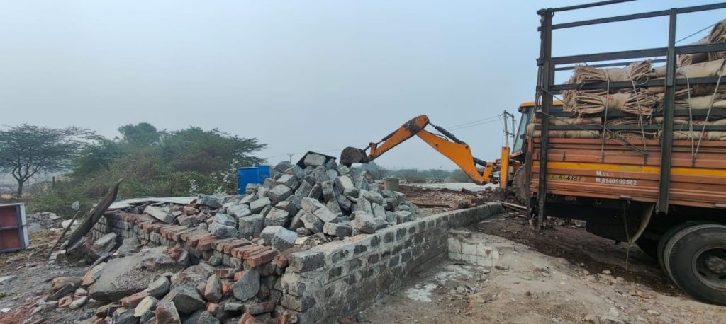 રાજકોટ જિલ્લા કલેકટર પ્રભવ જોશીના માર્ગદર્શન હેઠળ સરકારી ખરાબાની જમીન ઉપર ગેરકાયદે બાંધકામ કરાયેલા કોમર્શિયલ બાંધકામોનું ડિમોલીશન કરીને જગ્યાઓ દબાણમુક્ત કરવામાં આવી રહી છે.જે અન્વયે રાજકોટ જિલ્લાના લોધિકા તાલુકાના દેવગામ ગામે રાજકોટ-કાલાવડ મેઈન રોડ ઉપર આવેલ સરકારી ખરાબાની જમીન રેવન્યુ સ.નં.40 અને સ.નં.81 ની જમીન આશરે 2500 ચો.મી. માં જુદી-જુદી કુલ-4 હોટેલ કરી અનઅધિકૃત દબાણ કરવામાં આવ્યું હતું. અંદાજિત રૂૂ. 3 કરોડની કિંમતની 2500 ચોરસ મીટર જેટલી સરકારી જમીન ખાલી કરાવવામાં આવી છે.