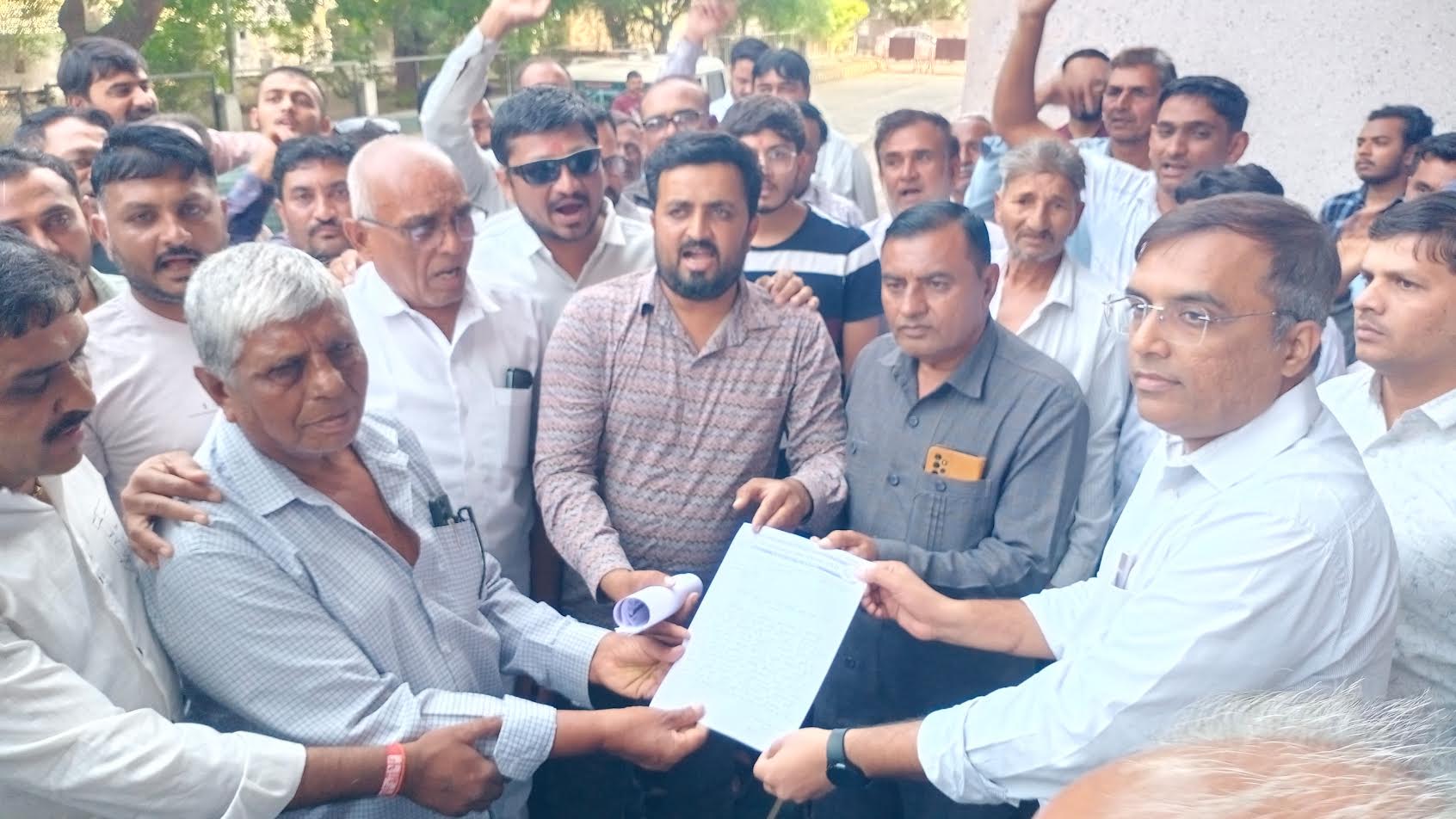 VCEને છુટા કરવામાં આવતા ખેડૂતોને ફોર્મ ભરવા તકલીફ પડતા ગ્રામજનો દ્વારા સુલતાનપુર ના તમામ આગેવાનો વિવિધ સંસ્થાઓ સહિતના લોકો મામલતદાર કચેરી ખાતે રજુઆત કરવા પહોચ્યાં હતા. અને જીગીશા પટેલ હાય હાય… જય જવાન જય કિસાન ના નારા સાથે તાલુકા મામલતદારને રજુઆત સાથે આવેદનપત્ર પાઠવ્યું હતુ. સમગ્ર મામલે યોગ્ય નિર્ણય નહીં લેવાય અને વીસી ઉપર કોઈ કાયદાકીય પગલાં લેવાશે તો સુલતાનપૂર ગ્રામપંચાયત સરપંચ સહિત ની બોડી સાથે તાલુકા પંચાયત બોડી, સહકારી મંડળી ના પ્રમુખ, જિલ્લા પંચાયત ઉપપ્રમુખ. સહિત નાઓ ની સામુહિક રાજીનામાં આપશે તેવી ની ચીમકી ઉચ્ચારી હતી. રજુઆત માં સુલતાનપુર નાં સરપંચ કાકુભાઈ વાછાણી, બાલાભાઈ વૈષ્ણવ, સહકારી મંડળીનાં પ્રમુખ કચરાભાઈ વૈષ્ણવ,ગ્રામ્ય પંચાયત સભ્ય ભાવેશભાઈ બોરડ સહિત જોડાયા હતા.