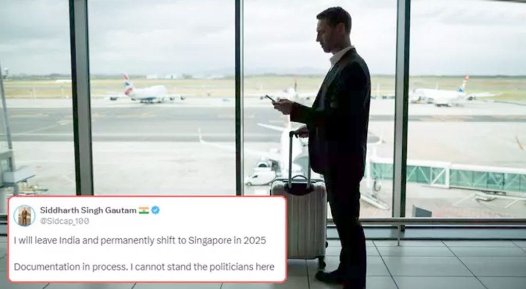 સિદ્ધાર્થ સિંહ ગૌતમ નામના રોકાણકારે એકસ પર લખ્યું કે હું આવતા વર્ષે એટલે કે 2025માં ભારત છોડી રહ્યો છું. અત્યારે પેપરવર્ક ચાલી રહ્યું છે. જે બાદ હું સંપૂર્ણપણે સિંગાપોર શિફ્ટ થવા જઈ રહ્યો છું. તે આગળ લખે છે કે હું અહીંના રાજકારણીઓને સહન કરી શકતો નથી.
