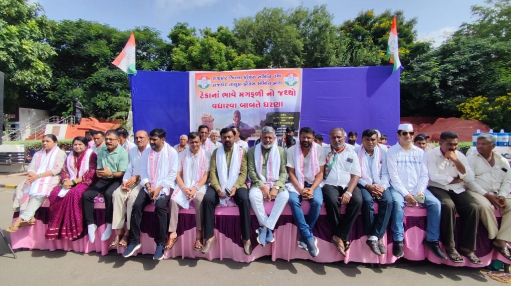રાજકોટ જિલ્લા કોંગ્રેસ સમિતિ તથા રાજકોટ તાલુકા કોંગ્રેસ સમિતિ દ્વારા બહુમાળી ભવન ચોક, રેસકોર્સ ખાતે ધરણા કરવામાં આવેલ હતા આ ધરણા નો મુખ્ય હેતુ સરકાર દ્વારા આવનાર દિવસોમાં મગફળીના ટેકાના જથાની જાહેરાત કરવામાં આવે અને ઓછામાં ઓછી 200 મણ મગફળી ખેડૂત દીઠ લેવામાં આવે જો આ માંગ નહીં સંતોષાય તો રાજકોટ જિલ્લા કોંગ્રેસ સમિતિ તથા રાજકોટ તાલુકા કોંગ્રેસ સમિતિ દ્વારા રસ્તા રોકો આંદોલન પણ કરવાની તૈયારી છે.