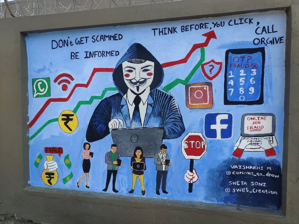 સાયબર ફ્રોડ અને દારૂ ઢીંચી ડ્રાઇવિંગ કરવા સામે રાજકોટ જેલની બહાર પેન્ટિંગ ઝુંબેશ