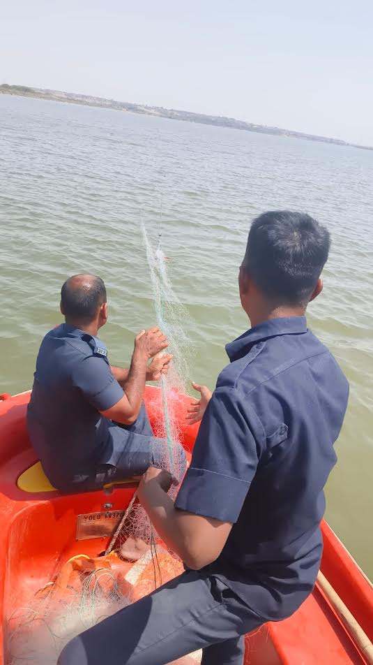 જેથી તેઓ પોતાની ટીમ સાથે ગઈકાલે બપોરે 12.00 વાગ્યાના અરસામાં રણજીત સાગર ડેમ પર પહોંચ્યા હતા. તેઓએ ફાયર બ્રિગેડ ની ટીમ ની મદદ લીધી હતી.જેથી ફાયર શાખાના જવાનો રેસ્ક્યુ બોટ સાથે રણજીત સાગર ડેમ પર આવી પહોંચ્યા હતા, અને ડેમના પાણીની અંદર જઈને ચકાસણી કરતા અંદર બિછાવેલી માછી મારી જાળ મળી આવી હતી. આશરે બે કિલોમીટર જેટલી લંબાઇની માછીમારી જાળ કે જે પાણી અંદર આવેલી હતી, અને તેમાં અનેક માછલાઓ ફસાયેલા આવ્યા હોવાનું ધ્યાનમાં આવ્યું હતું.