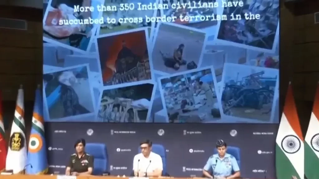 પ્રેસ બ્રીફિંગની શરૂઆતમાં, 2001 માં ભારત પર સંસદ પર હુમલો, 2008 માં મુંબઈ પર આતંકવાદી હુમલો, ઉરી, પુલવામા અને પહેલગામ હુમલા સંબંધિત ક્લિપિંગ્સ બતાવવામાં આવી હતી. વિક્રમ મિશ્રીએ કહ્યું કે પહેલગામ પર હુમલો કાયરતાપૂર્ણ હતો. આ હુમલો જમ્મુ અને કાશ્મીરની શાંતિને ખલેલ પહોંચાડવા માટે કરવામાં આવ્યો હતો. કોમી રમખાણો ભડકાવવાનો પણ પ્રયાસ કરવામાં આવ્યો હતો.