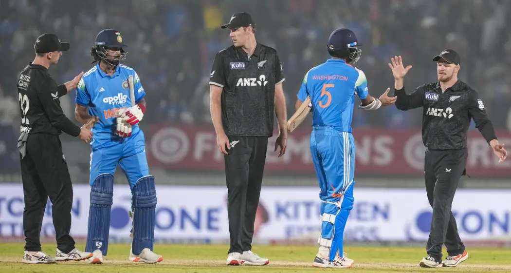 ત્યારબાદ સંકટમોચક બનેલા કે.એલ. રાહુલ અને હર્ષિત રાણા વચ્ચે 37 રનની મહત્વપૂર્ણ પાર્ટનરશિપ થઈ હતી. હર્ષિત 29 રન બનાવીને આઉટ થયો હતો, પરંતુ રાહુલે અંત સુધી અણનમ રહીને શાનદાર સિક્સર સાથે ભારતને જીત અપાવી હતી.