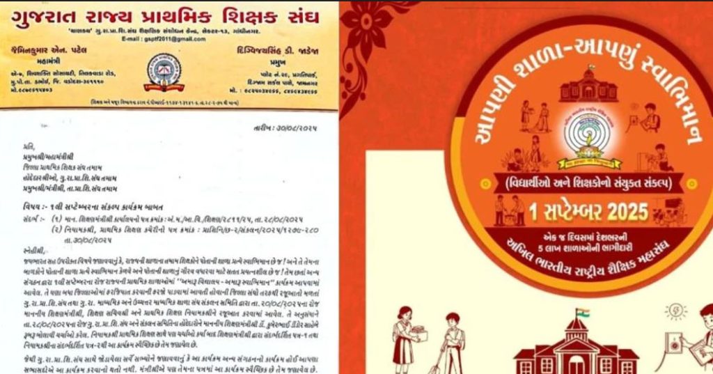 પ્રાથમિક શિક્ષક સંઘે તેના સભ્યોને લખેલા લેટરમાં કહેવામાં આવ્યું છે કે, 1 સપ્ટેમ્બર ના રોજ આયોજિત કરવામાં આવેલ મારી શાળા મારી, સ્વભિમાન કાર્યક્રમ એ સ્વૈચ્છિક છે પરંતુ કેટલાક જિલ્લાઓમાં તેની ફરજ પાડવામાં આવી રહી છે. રાજ્યની પ્રાથમિક સરકારી શાળાના શિક્ષકોમાં તેમની શાળા પ્રત્યે પહેલાથી જ સ્વાભિમાન છે. શિક્ષણ વિભાગ દ્વારા કરવામાં આવેલ પરિપત્રમાં પણ આ કાર્યક્રમ સ્વૈચ્છિક હોવાનો ઉલ્લેખ કરવામાં આવ્યો છે. છતાં આ કાર્યક્રમ માટે ફરજ પાડવામાં આવી રહી છે. જેથી પ્રાથમિક શિક્ષક સંઘ સાથે સંકળાયેલ સભ્યોએ આ કાર્યક્રમ ન યોજવા કે જવા માટે આદેશ કરવામાં આવ્યો છે.