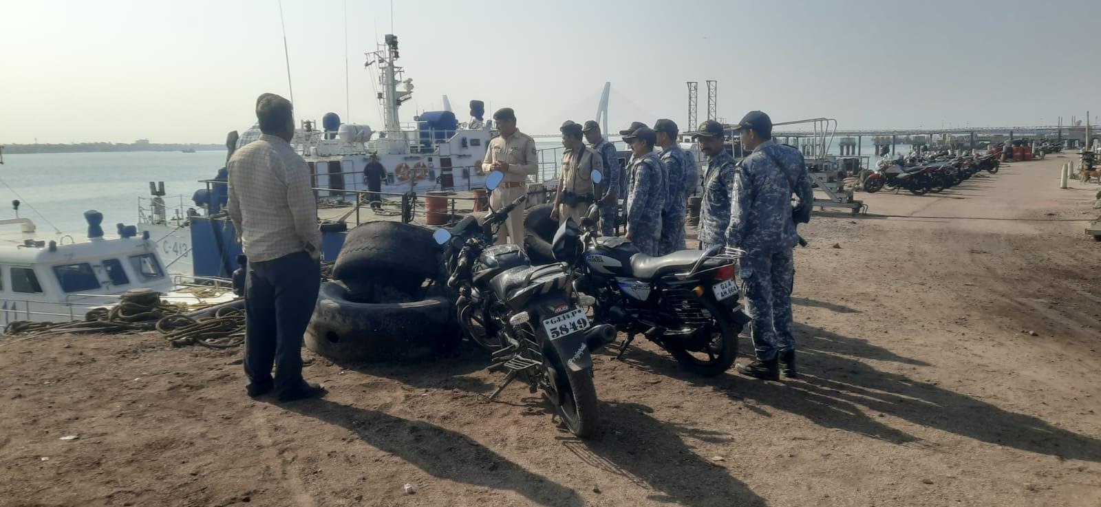 ગુજરાત રાજ્યના વિશાળ દરિયાકિનારા તેમજ તેને સ્પર્શતા જમીન વિસ્તારની સુરક્ષા સુનિશ્ચિત કરવા માટે ગુજરાત સરકાર દ્વારા મરીન ટાસ્ક ફોર્સની રચના કરવામાં આવેલ છે. જે અંતર્ગત એ.ટી.એસ.ના અધિક પોલીસ મહાનિર્દેશક અમિતકુમાર વિશ્વકર્મા, મરીન ટાસ્ક ફોર્સના પોલીસ મહાનિરીક્ષક પી.એલ. માલ તથા હજીરાના પોલીસ અધિક્ષક એસ.જે. પરમારના માર્ગદર્શન હેઠળ ડીવાયએસપી કે.પી. પારેખ અને પી.એસ.આઈ. આર.કે. જાડેજા અને બી.એચ. ચાવડા અને કમાન્ડો દ્વારા ઓખા મંડળ, બેટ દ્વારકા, શિવરાજપુર બીચ, રૂૂપેણ બંદર, ગોમતીઘાટ, ઓખામઢી, ઓખેશ્વર દરિયાકાંઠા વિસ્તારમાં ગુરુવારે સઘન કોસ્ટલ પેટ્રોલીંગ કરવામાં આવ્યું હતું. તેમ નાયબ પોલીસ અધિક્ષક અને ઓખા મરીન સેકટર લીડર કેતન પારેખની યાદીમાં જણાવાયું છે. (ફોટો: કુંજન રાડિયા)