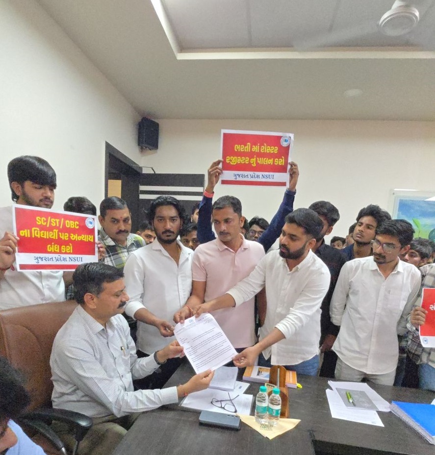 એન.એસ.યુ.આઇ.એ સૌરાષ્ટ્ર યુનિ.ના કુલપતિને એક આવેદનપત્ર પાઠવી જણાવેલ છે કે, સૌરાષ્ટ્ર યુનિવર્સિટી દ્વારા તાજેતરમાં બિન-શૈક્ષણિક સંવર્ગની ભરતી માટે જે પરીક્ષાઓ યોજવામાં આવી છે, તેમાં પાચાના સ્તરે ગંભીર ગેરરીતિઓ અને નીતિ-નિયમોનું ઉલ્લંઘન સામે આવ્યું છે. જેમાં સરકારી નિયમો મુજબ અનુસૂચિત જાતિ (SC), અનુસૂચિત જનજાતિ (ST) અને અન્ય પછાત વર્ગો (OBC) માટે નિર્ધારિત રોસ્ટર પોઈન્ટ્સ મુજબ ભરતી કરવાની હોય છે. પરંતુ આ ભરતીમાં રોસ્ટર રજિસ્ટરની અમલવારીમાં ગંભીર બેદરકારી દાખવી અનામત વર્ગના ડકોનું હનન કરવામાં આવ્યું છે.