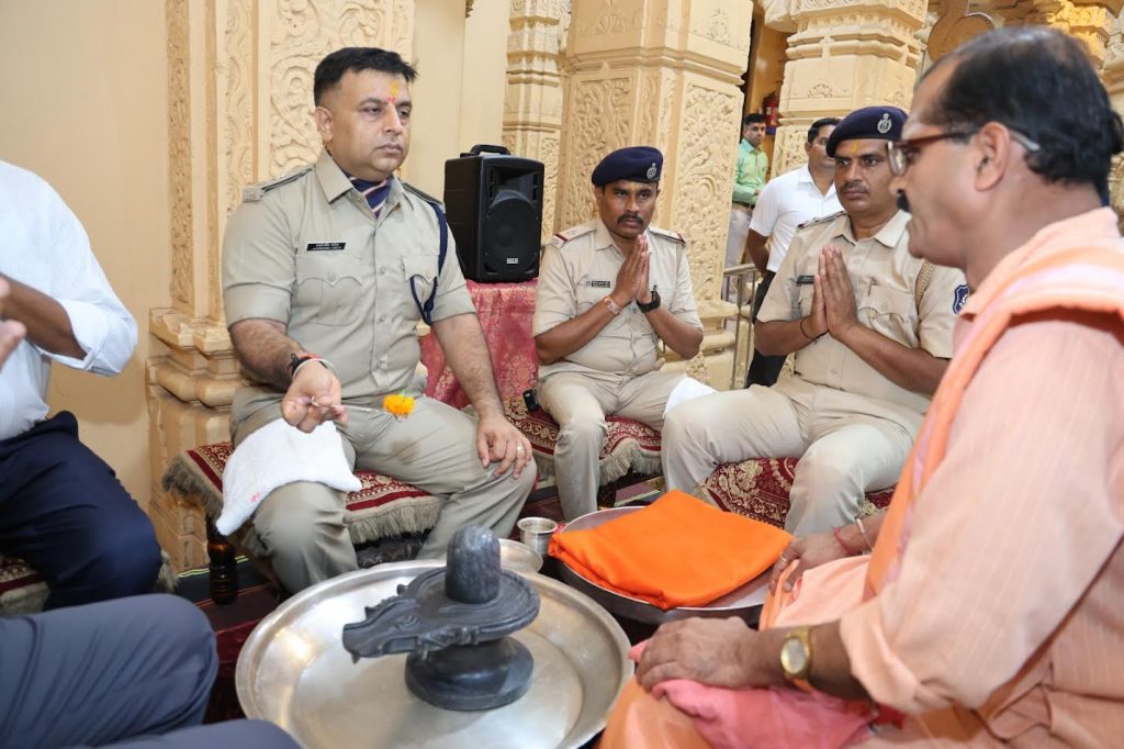 નવનિયુક્ત પોલીસવડા જયદીપસિંહ જાડેજા પોલીસ પરિવાર સાથે સોમનાથ મહાદેવ દર્શન કર્યા તેઓ દ્વારા સોમનાથ મહાદેવ ધજા પૂજા સોમેશ્વર મહાપૂજા કરાવામાં આવી એસપી પાદ પૂજાની પાલખી યાત્રા પણ જોડાયા ટ્રસ્ટ તરફથી જનરલ મેનેજર વિજયસિંહ ચાવડા એ સોમનાથ મહાદેવનું સ્મૃતિ ચિત્ર અર્પણ કરી સ્વાગત અભીવાદન કર્યું નવા એસપી જયદીપસિંહ જાડેજા અને આજથી ચાર્જ સંભાળ્યો લોકોને કાયદો અને વ્યવસ્થા જાળવી રાખવા અપીલ કરી