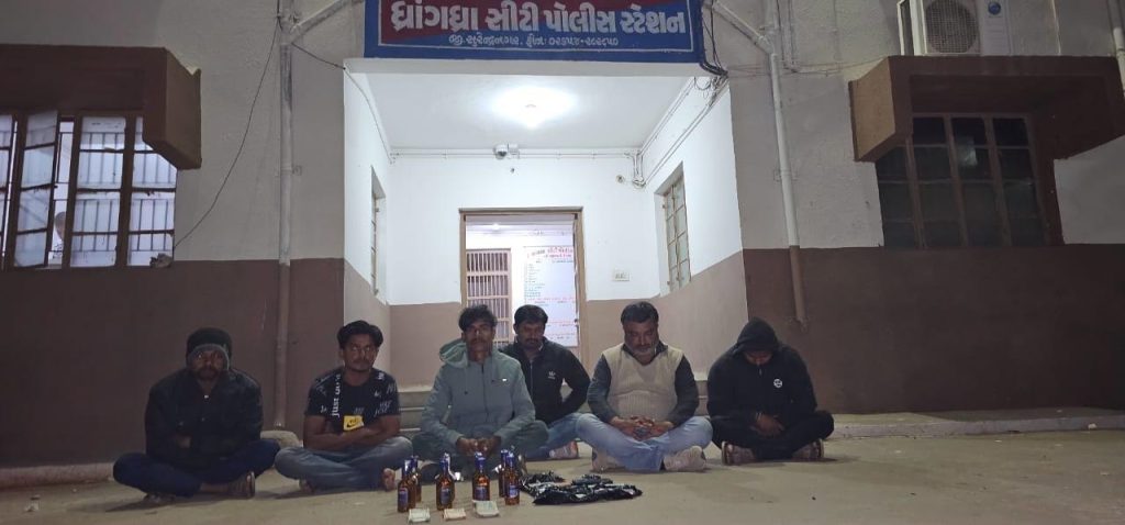બીજાદરોડામાં ધ્રાંગધ્રાના મોચીવાડ ઠાકોરસમાજની વાડી પાસે પાડેલા દરોડામાં 15 બોટલ વિદેશી દારૂ કબ્જે કરવામાં આવ્યો હતો. આ દરોડામાં સ્ટેન્ડ ચલાવનાર યાકુબ જુમા માણેક તથા મુસ્તાક વસીમ રમઝાન સાથે દારૂ ખરીદવા આવેલા યશપાલસિંહ મહિપતસિંહ ઝાલા, નરેન્દ્રસિંહ હરપાલસિંહ પરમાર, જસમત છગનભાઈ સોલંકી અને હાર્દિક ભરતભાઈ પરમારની ધરપકડ કરવામાં આવી હતી. પુછપરછમાં આ દારૂનું સ્ટેન્ડ ચલાવનાર સુત્રોધાર અજ્જુ જુમા માણેક અને બિચ્છુખાન તથા સપલાયર તરીકે જીજે 13 બીએચ 5786 સ્કૂટરનો ચાલકને ફરાર જાહેર કરવામાં આવ્યા છે.