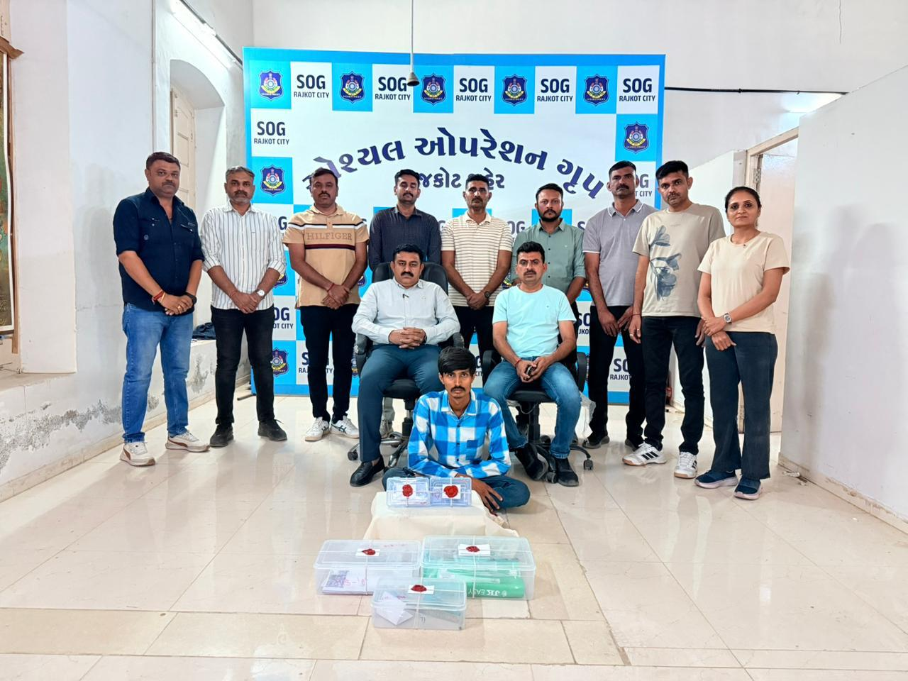 પોલીસ કમિશ્નર બ્રજેશકુમાર ઝા,અધિક પોલીસ કમિશ્નર ચૈતન્ય માંડલીક,ડીસીપી ક્રાઇમ જગદીશ બાંગરવા,એસીપી ક્રાઈમ ભરત બી. બસીયાની સુચનાથી એસઓજીના પી.આઈ એસ.એમ. જાડેજા, પીએસઆઈ વી.કે.ઝાલા તથા એ.એસ.આઇ. રાજેશભાઇ બાળા, વિરેન્દ્રસિંહ ઝાલા, અરૂૂણભાઇ બાંભણીયા, પો.હેડ. કોન્સ. સિધ્ધરાજસિંહ જાડેજા, ઉપેન્દ્રસિંહ ઝાલા, જયદીપસિંહ ચૌહાણ, મહાવીરસિંહ ઝાલા, તથા પો.કોન્સ. નિર્મળસિંહ ઝાલા મહીલા પોલીસ મોનાબેન બુસાએ કામગીરી કરી હતી.