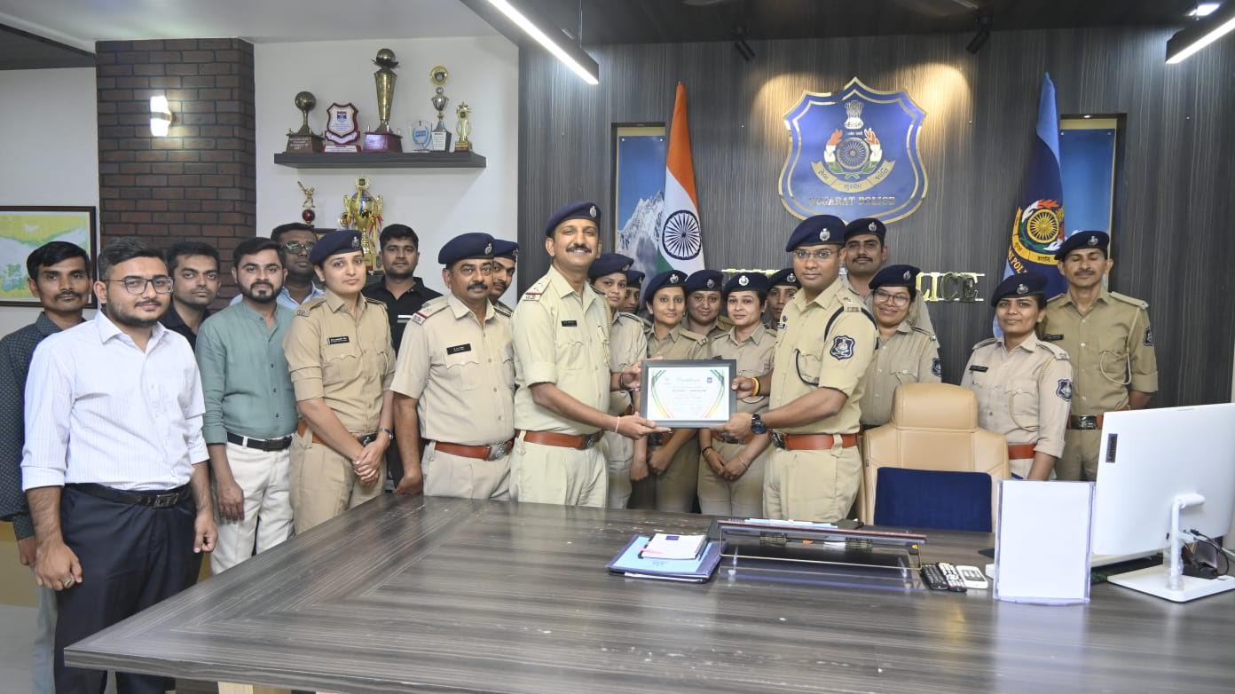 જે પ્રશંસનીય અને અસરકારક કામગીરી કરવા બદલ ગુજરાત રાજયના ડી.જી.પી ડો. કે.એલ એન. રાવ ના હસ્તે જામનગર પોલીસ વિભાગ ની નેત્રમ ટીમ વતી એ.એસ.આઇ. પરેશભાઇ એ.ખાણધર ને પ્રમાણપત્ર એનાયત કરવામાં આવ્યું હતું, આ ઉપરાંત જામનગર જિલ્લા પોલીસ અધિક્ષક ડો.રવિ મોહન સૈની દવારા સમગ્ર નેત્રમ ટીમને આ પ્રમાણપત્ર મેળવવા બદલ શુભકામનાઓ પાઠવવામાં આવી હતી.