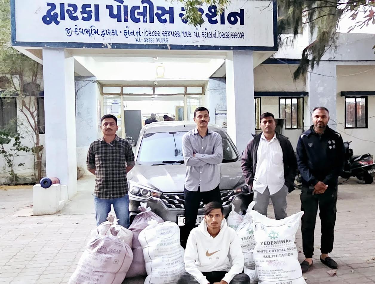 આથી પોલીસે રૂૂ. 1 લાખ 12 હજારની કિંમતના દેશી દારૂૂ સાથે જામનગરમાં હાલ ગુરુદ્વારા ચોકડી વિસ્તારમાં રહેતા અને મૂળ દ્વારકાના રહીશ એવા કિશન દેવાભા મકવાણા (ઉ.વ. 21) ની અટકાયત કરી, રૂૂ. 5 લાખની કિંમતની મોટરકાર સાથે કુલ રૂૂ. 6.12 લાખનો મુદ્દામાલ કબજે કર્યો હતો. દારૂૂનો આ જથ્થો તેણે જામનગરના રહીશ ભાવેશ દેવદાસ ગઢવી અને પાછતરડી ગામના અમરા કરમણ હુણ પાસેથી મેળવ્યો હોવાનું જાહેર થયું છે. આ સમગ્ર પ્રકરણ સંદર્ભે દ્વારકા પોલીસે કિશન દેવાભા મકવાણાની અટકાયત કરી, અન્ય બે શખ્સોને ઝડપી લેવા માટેના ચક્રો ગતિમાન કર્યા છે.