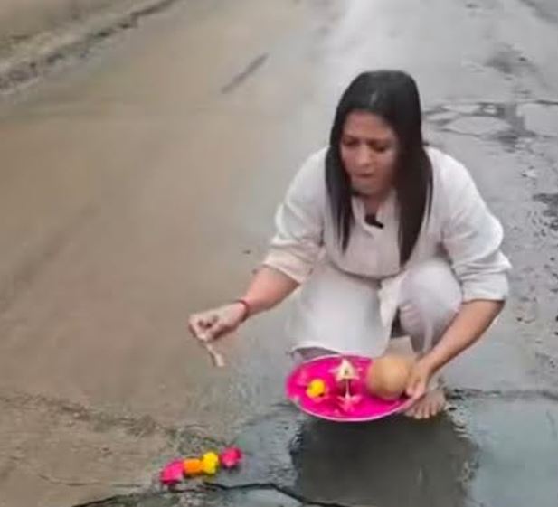 જીગીશા પટેલે અંડરબ્રીજ નાં મધ્યમાં જ્યાં પાણી ભરાતુ હોય છે.ત્યાં કંકુ,અબીલ ગુલાલ ફુલ સાથે દિવડો પ્રગટાવી શ્રીફળ વધેરી પુજા કરી જણાવ્યું કે અંડરબ્રીજ માં પાણીની સમસ્યા જુની હોવા છતા નગરપાલિકા તથા રેલ્વે તંત્ર એકબીજા પર જવાબદારી ઢોળી રહ્યા છે.બીજી બાજુ રોજીંદા હજારો રાહદારીઓ પરેશાન બની રહ્યા છે.જે તંત્ર ની જવાબદારી આવતી હોય તેમણે પ્રજા નાં હીત માં તાકીદે ઉકેલ લાવવો જોઈએ.