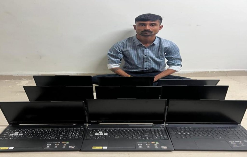 રાજકોટના ભક્તિનગર સ્ટેશન પ્લોટમાં આવેલ લેપટોપના શો રૂમમાં થયેલી 7.16 લાખના 9 જેટલા લેપટોપ ચોરીનો ભેદ રાજકોટ શહેર એલસીબી ઝોન-2નાં PSI ઝાલા અને તેમની ટીમે ઉકેલી નાખી લેપટોપ ચોરી કરનાર જૂનાગઢના શખ્સની ધરપકડ કરી હતી. કંપનીના શો રૂમમાં નોકરીએ લાગેલો જૂનાગઢનો શખ્સ 10 દિવસમાં 9 લેપટોપ ચોરી ગયો હતો અને આ લેપટોપ તેણે લોધાવાડ ચોકમાં કોમ્પ્યુટર રીપેરીંગનું કામ કરતાં એક વેપારીને વેચી નાખ્યા હતાં.