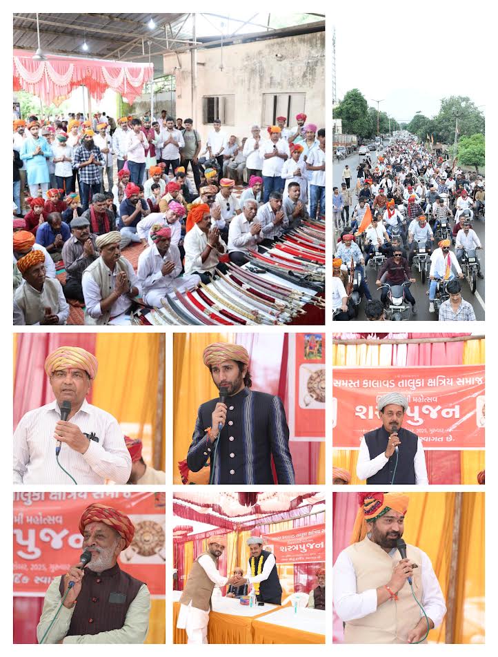 તારીખ 2 ઓક્ટોબર 2025 ના રોજ સમસ્ત કાલાવડ તાલુકા ક્ષત્રિય સમાજ દ્વારા કાલાવડ શ્રીઆશાપુરા મંદિર ખાતે પવિત્ર દશેરાના ના દિવશે શસ્ત્રપૂજન નો ભવ્ય ઉત્સવ ઉજવાયો હતો.
