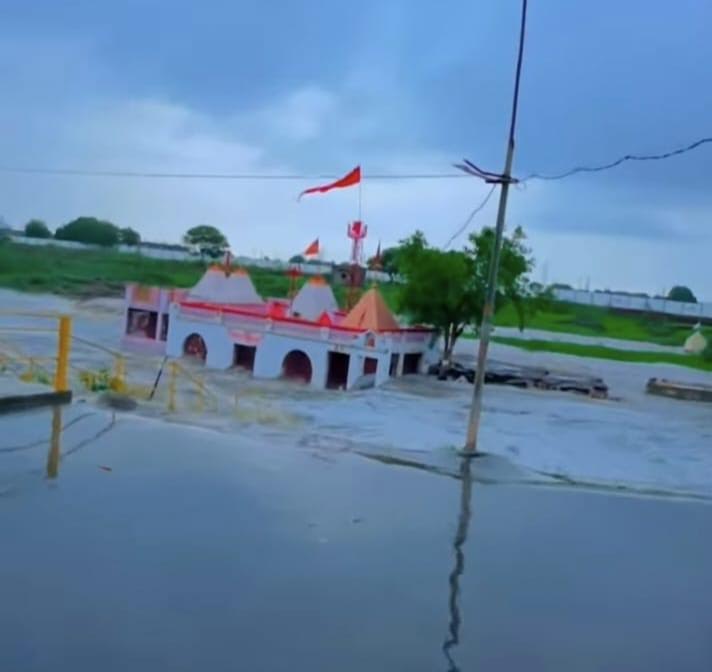 જામનગર શહેરને પાણી પૂરું પાડતા રણજીતસાગર ડેમમાં ગઈકાલે મોટા પ્રમાણમાં પાણીનો જથ્થો આવી જતાં ડેમ ઓવરફ્લો થયો હતો, અને તે પાણી નો જથ્થો દરેડ ની કેનાલ તરફ આવ્યો હતો. ગઈકાલે બપોર દરમિયાન પડેલા વરસાદના કારણે દરેડની નદીમાં પૂર આવ્યા હતા, અને પાણીનો ધસમસતો પ્રવાહ દરેડ નજીક આવેલા ખોડીયાર મંદિરના પરિસરમાં આવી પહોંચ્યો હતો. એક તબક્કે પાણીનો મોટો પ્રવાહ આવી જતાં દરેડ નું ખોડીયાર મંદિર પાણીમાં ગરકાવ થઈ ગયું હતું. જોકે આજે વહેલી સવારે પાણીનો પ્રવાહ ઓછો થયા બાદ ધીમે ધીમે પૂરના પાણી ઓસર્યા હતા, અને મંદિર ફરીથી પાણીમાંથી બહાર દેખાવા લાગ્યું હતું. ગઈકાલે સાંજે લેવાયેલી ઉપરોક્ત તસ્વીરમાં દરેડ નું ખોડીયાર મંદિર અડધું પાણીમાં ડૂબેલું દ્રશ્યમાન થાય છે.