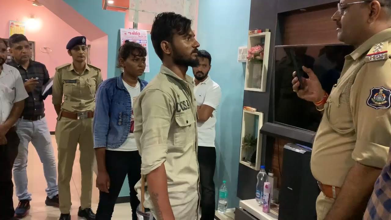શહેરની વાલકેશ્વર સોસાયટી મેઇન રોડ પર સ્થિત શ્રીનગર સોસાયટી શેરી નં. 3માં એકલા રહેતાં બરકતભાઈ ગુલામહુસેનભાઈ લાખાણી (ઉ.વ.70)ની ઘરમાં ઘૂસી, છરીના ઘા ઝીંકી, હત્યા કરી, સોનાના દાગીનાની લૂંટ ચલાવાયાની ઘટનાનો ભેદ ક્રાઇમ બ્રાંચે ઉકેલી લઇ બે આરોપી કિશન માનસિંગ વાઢેર (ઉ.વ.22, રહે. હાલ કારડિયા રાજપૂત છાત્રાલય, જૂની ધરમ સિનેમા સામે, મૂળ સતાપર, તા. જામજોધપુર) અને તેની મિત્ર સ્નેહલબા પ્રતાપસિંહ ગોહીલ (ઉ.વ.22, રહે. હાઉસિંગ બોર્ડના ક્વાર્ટર, બ્લોક નં. 333, કોઠારિયા સોલવન્ટ, મૂળ છાત્રા, તા. તળાજા)ને ઝડપી લઇ લૂંટી લીધેલા સોનાના દાગીના સહિત કુલ રૂૂા. 7.55 લાખનો મુદ્દામાલ કબજે કર્યો હતો આ ઘટનામા ભકિતનગર પોલીસ મથકનાં પીઆઇ એમ. એમ. સરવૈયા અને રાઇટર નિલેશભાઇ મકવાણા સહીતનાં સ્ટાફે બંને આરોપીને બનાવવાળી જગ્યાએ લઇ જઇ રીક્ધટ્રકશન કરાવ્યુ હતુ જેમા બંનેએ કબુલ્યુ હતુ કે મૃતક બરકતભાઇનુ કિશને મોઢુ દબાવી ગળા પર છરીનો એક ઘા ઝીકી દીધો હતો. જયારે આજ છરી વડે સ્નેહલબાએ છરીનો એક ઘા પેટમા ઝીકી દીધો હતો. (તસવીર: મુકેશ રાઠોડ)