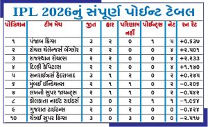 લીગના અંતે માત્ર 4 જ ટીમો પ્લેઓફમાં જશે, તેથી ટોપ 4 માં રહેવું સૌથી જરૂૂરી છે. હાલની સ્થિતિએ ટોપ 4 ટીમો આ મુજબ છે: 5 પોઈન્ટ સાથે પંજાબ કિંગ્સ પ્રથમ નંબરે છે. ત્યારબાદ 4 પોઈન્ટ અને શાનદાર +2.501 ના નેટ રન રેટ સાથે રોયલ ચેલેન્જર્સ બેંગ્લોર બીજા સ્થાને છે. રાજસ્થાન રોયલ્સ 4 પોઈન્ટ (+2.233 નેટ રન રેટ) સાથે ત્રીજા સ્થાને છે. દિલ્હી કેપિટલ્સ પણ 4 પોઈન્ટ (+1.170 નેટ રન રેટ) સાથે ચોથા સ્થાને છે.