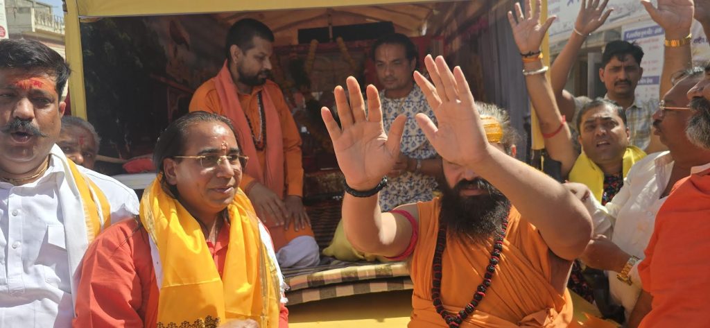 સિદ્ધપીઠ મહેંદીપુર બાલાજી મંદિર મહંત નરેશપુરીજી મહારાજના પવિત્ર સાનિધ્ય તથા આચાર્ય રાજેશ્વરીજીના નેતૃત્વમાં કૃષ્ણ જન્મભૂમિ મુક્તિ આંદોલન અંતર્ગત ભવ્ય રથયાત્રા દ્વારકા (ગુજરાત)થી મથુરા (ઉત્તર પ્રદેશ) સુધીનું આયોજન કરવામાં આવ્યું છે. ગઈકાલે મંગળવારે સવારે દ્વારકાધીશ જગત મંદિર પરિસરમાં જગતગુરુ શંકરાચાર્ય સ્વામી સદાનંદજીના શિષ્ય બ્રહ્મચારી નારાયણનંદજી દ્વારા રથનું પૂજન કરવામાં આવ્યું. દ્વારકા ગુગલી બ્રાહ્મણ જ્ઞાતિ 505 સમસ્તના પ્રમુખ, દેવસ્થાન સમિતિ અધિકારીઓ, કર્મચારીઓ દ્વારા રથનો સત્કાર કરવામાં આવ્યો હતો.