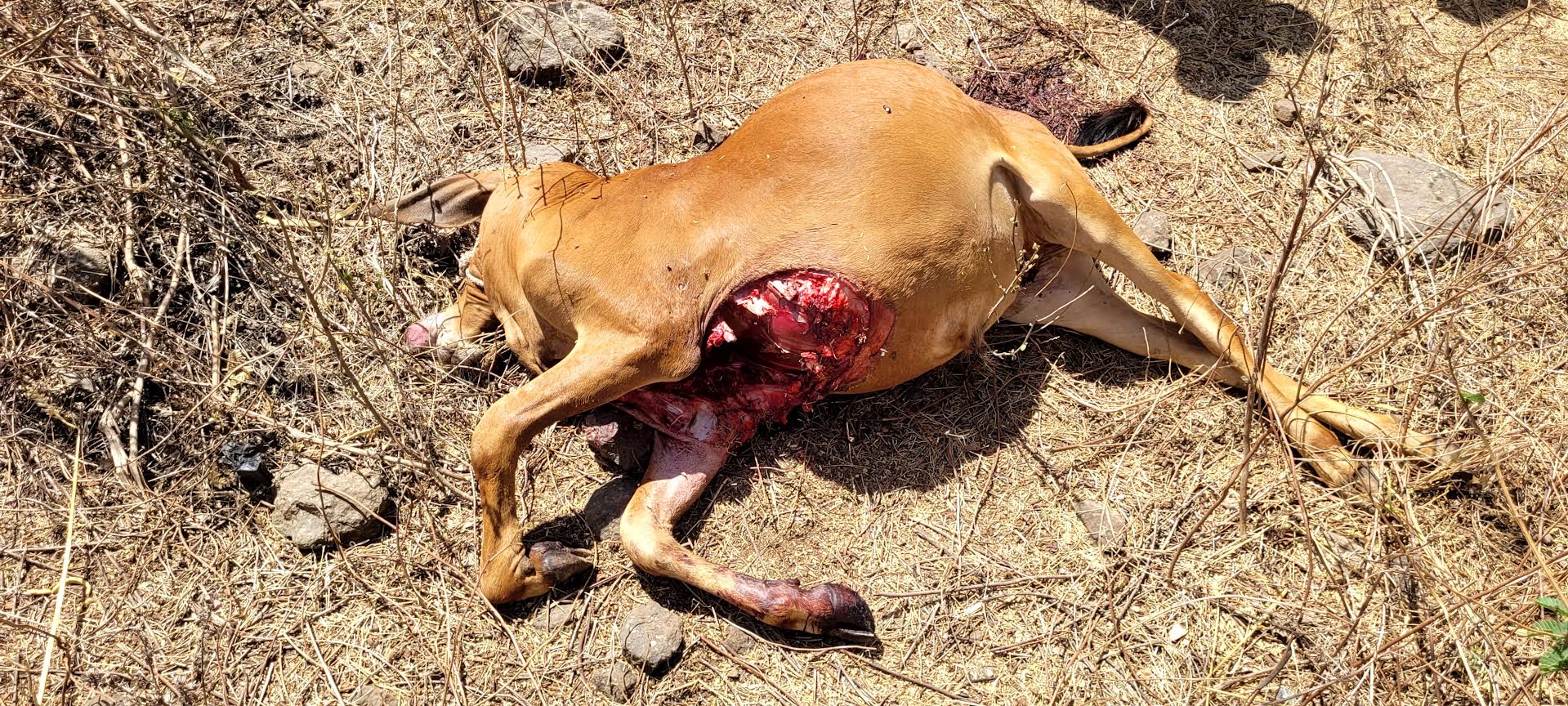 વીરપુર જલારામ ગામની આહાબાની સીમમાં છેલ્લા ઘણા સમયથી એક દીપડાએ દેખા દેતા ખેડૂતોમા ભયનો માહોલ ફેલાયો છે. વીરપુર ગામની આહાબા સીમ વિસ્તારમાં વાડી ખેતર ભાગ્યું રાખીને વાવેતર કરતા વીરપુર ગામના કિશોરભાઈ શેખ પોતાએ ભાગ્યું રાખેલ ખેતરે વાડીએ – બાંધેલા બે ગાય તેમજ અને વાછરડાં માંથી એક વાછરડાંનું દિપડાએ મારણ કર્યાંનું સામે આવ્યું છે.