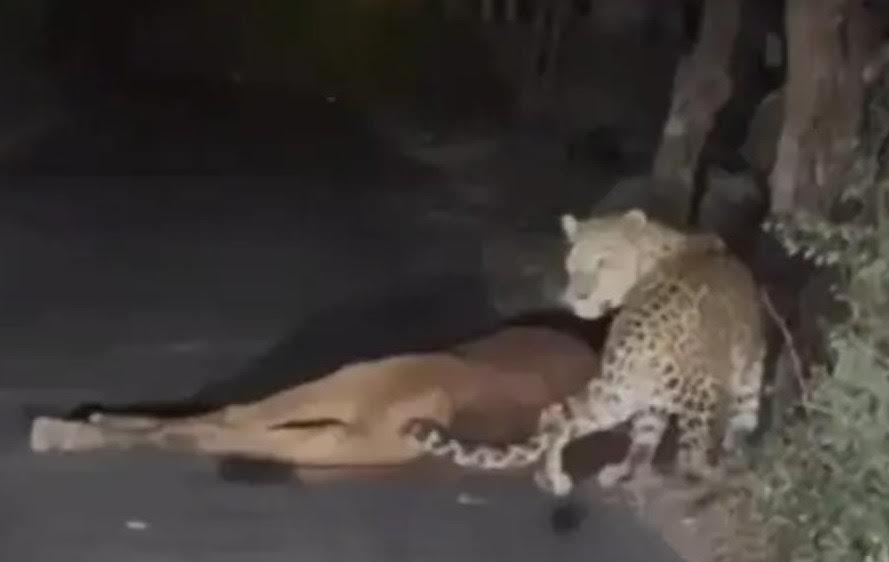 વેરાવળ નજીક ચમોડા – મલોંઢા રોડ પર એક દીપડાએ જાહેર માર્ગ પર ગાયનું મારણ કર્યું હતું. આ ઘટના રાત્રીના આશરે બે વાગ્યાની આસપાસ બની હતી, જેનો વીડિયો મોબાઈલ કેમેરામાં કેદ થયો છે અને હાલ સોશિયલ મીડિયા પર વાયરલ થઈ રહ્યો છે.
