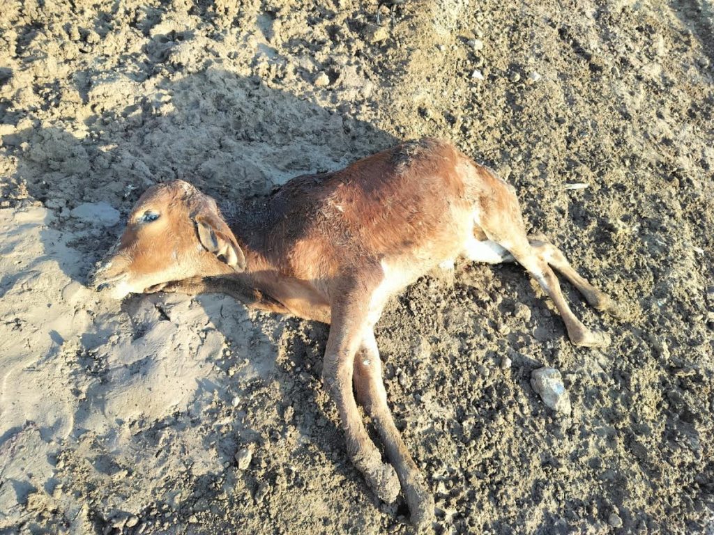સોમનાથ વેણેશ્વર ખાતે આવેલ કર્મચારીની સોસાયટીની બાજુમાં આવેલ મોટી ખાણમા એક મૃત હાલતમાં વાછરડી જોવાં મળેલ આ વાછરડીનો પાછળનો ભાગ ખાધેલ હાલતમાં જોવાં મળે છે આ સોસાયટીની આજુબાજુ વારંવાર દિપડો સી સી ટી વી મા કેદ થયેલ છે અને પાજરા પણ ગોઠવેલ હતા જેથી આ વાછરડીને દિપડાએ મારી નાખેલ હોય તેવી લોકો મા આશંકા જોવાં મળે છે (તસ્વીર દેવાભાઇ રાઠોડ)
