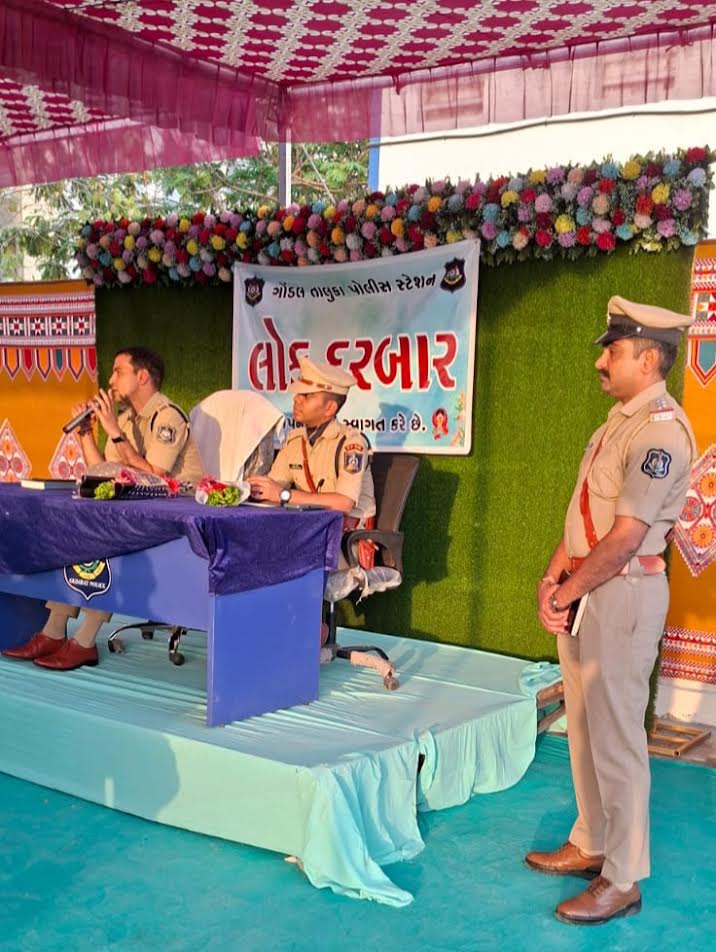 ગોંડલ તાલુકા પોલીસ મથક ખાતે વ્યાજના વિષચક્રમાં ફસાયેલા લોકો તેમજ કાયદો વ્યવસ્થા નું ઉલંઘન કરતાં તત્વો સામે જાગૃતિ લાવવા લોક દરબારનું આયોજન કરવામાં આવ્યું હતુ.લોકદરબાર જિલ્લા પોલીસ વડા વિજયસિંહ ગુર્જર તેમજ ગોંડલ તાલુકા પોલીસ મથકના પ્રોબેશ્નલ અજઙ પ્રખરકુમારના અધ્યક્ષ સ્થાને યોજાયો હતો. કાર્યક્રમનો મુખ્ય હેતુ વ્યાજખોરીના ચક્રમાં ફસાઈ જતાં લોકોમાં જાગૃતિ લાવવાનો અને કનડતા ઈસમો સામે કાયદેસરની કાર્યવાહી અંગે લોકોને માર્ગદર્શન આપવાનો હતો.બીજી બાજુ કોંગ્રેસ નાં આગેવાનો ને લોકદરબાર માં આમંત્રણ મળ્યું નાં હોય પોલીસ દ્વારા ભાજપ પ્રેરીત લોકદરબાર યોજાયા નો આક્ષેપ કરાયો હતો.
