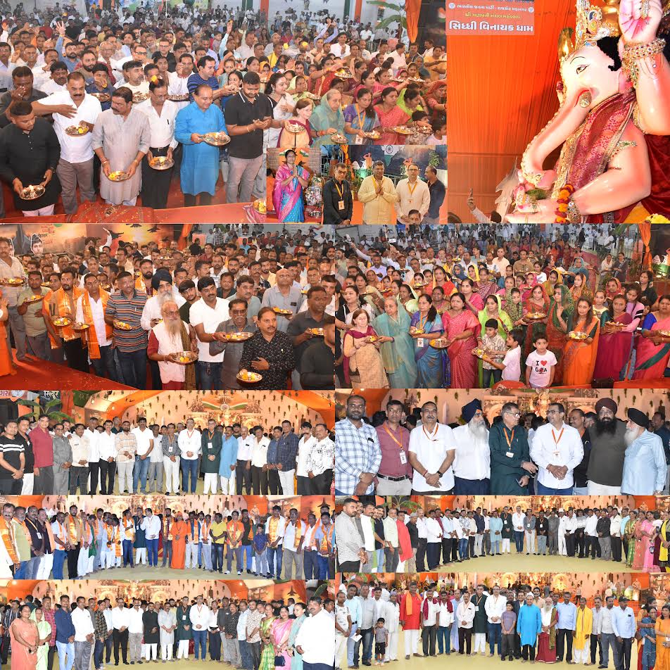 શહેર ભાજપ આયોજીત મંગલ મહોત્સવમાં રોજે રોજ વિવિધ સમાજ, સંસ્થા, સેવાકીય સંસ્થા, શૈક્ષણીક સંસ્થાના આગેવાનો દ્વારા મહાઆરતીનો લાભ લેવાય છે. તે અંતર્ગત સિધ્ધી વિનાયક ધામ ખાતે આજે કોળી સમાજ, રાજકોટ મહાનગરપાલિકાના કોર્પોરેટર , કર્મચારી ઓ, જીલ્લા પંચાયતના સભ્ય અને કર્મચારી ઓ, ભાષાભાષી, મુસ્લિમ સમાજ, વોરા સમાજ, કંસારા સમાજ તેમજ એન.એસ.એસ., એન.સી.સી., આઈએમઆઈ, માર્કેટીંગ યાર્ડના આગેવાનો હોદ્દેદારો મહાઆરતીનો લાભ લીધો હતો. અને વોર્ડ નં.15 તથા 16 ના કાર્યકર્તાઓ અને આગેવાનો મહાઆરતીનો લાભ લીધો હતો. આ મહાઆરતીના ઈન્ચાર્જ શહેર ભાજપ ઉપપ્રમુખ રમેશભાઈ પરમાર અને શહેર ભાજપ મંત્રી ડો.વિજયભાઈ ટોળીયાએ જવાબદારી સંભાળી હતી.