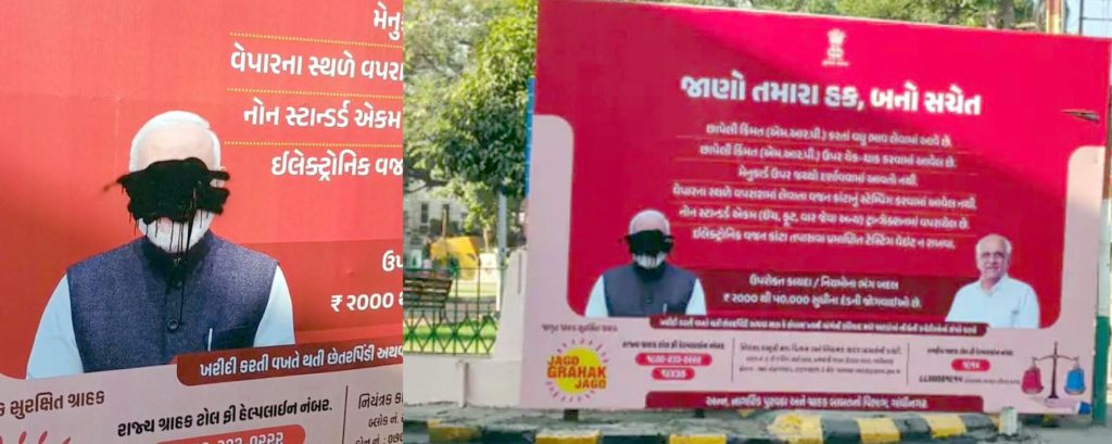 મળતી માહિતી મુજબ શહેરના શારદાબાગ પાસે નાગરિક પૂરવઠા વિભાગ દ્વારા ગ્રાહકોની જાગૃતિ માટે વડાપ્રધાન મોદી અને મુખ્યમંત્રી ભૂપેન્દ્રભાઇ પટેલની તસવીર વાળા પોસ્ટરમાં લગાવવામાં આવ્યા હોય ત્યારે બે દિવસ બે દિવસ પૂર્વે વડાપ્રધાન મોદીના ફોટા ઉપર કોઈ ટીખળ દ્વારા કાળી શાહી લગાડી દેતા ચકચાર જાગી હતી.