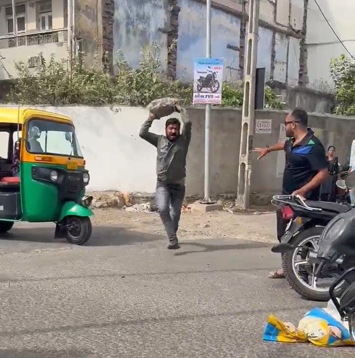 જામનગરમાં દિગ્વિજય પ્લોટ વિસ્તારમાં બે વાહનો અથડાયા પછી એક વાહન ચાલક ઉશ્કેરાયો હતો, અને જમીન પરથી મોટો પથ્થર ઉપાડીને અન્ય વાહનચાલક ને મારવા માટે દોડ્યો હતો. જેનો વિડીયો શહેરમાં વાયરલ થયો હતો. પોલીસે તે આરોપીને પકડી લઈ તેની સામે ગુનો નોંધ્યો છે.