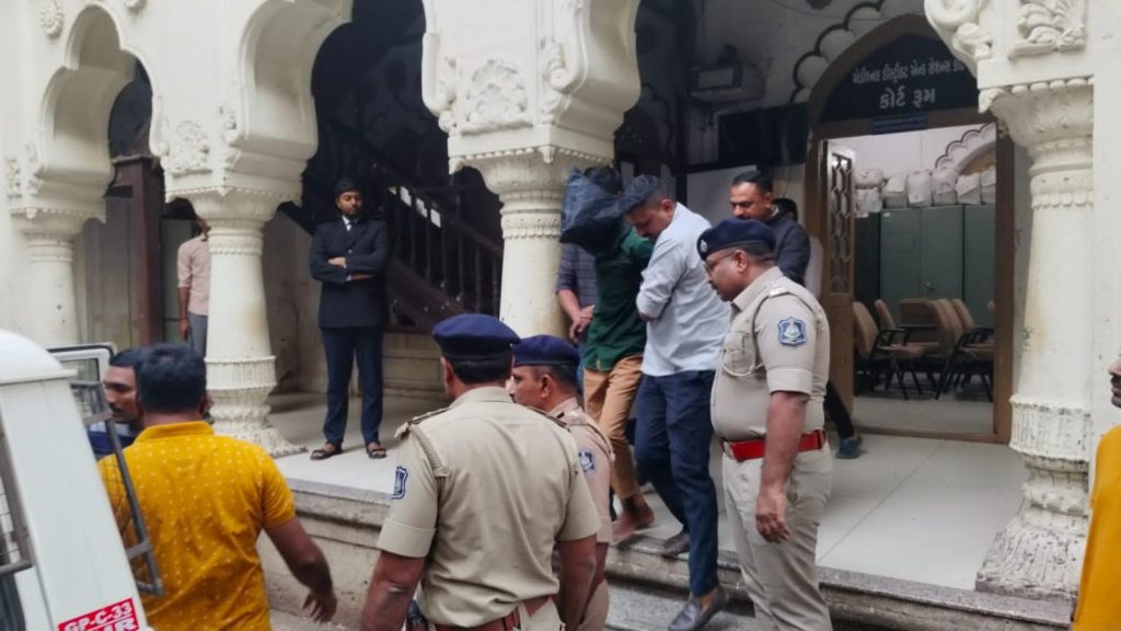 ભાવનગર શહેર જિલ્લામાં ચકચાર જગાવનાર એક ચાર વર્ષની માસૂમ બાળા સાથે દુષ્કર્મ આચરનાર નરાધમ શખ્સ ને પોલીસે ઝડપી લીધો હતો અને ભાવનગર ના ઈ.ચા.ત્રીજા એડી. સેશન્સ જજ ની અદાલત સમક્ષ રજૂ કરી પોલીસ તંત્ર દ્વારા રીમાન્ડની માંગણી કરતા અદાલતે આરોપી ને બે દિવસ ના રીમન્ડ મંજૂર કર્યા હતા. આવા નરાધમ આરોપીને કોર્ટમાં રજૂ કરતા પહેલાં ભાવનગર પોલીસ તંત્ર દ્વારા ચુસ્ત પોલીસ બંદોબસ્ત ગોઠવવામાં આવ્યો હતો . બનાવ અંગેની વિગતો મુજબ વરતેજ પોલીસ મથક હેઠળ આવતા વિસ્તારમાં રહેતા આરોપી અજય પરમાર ઉ.વ.21 એ ચાર વર્ષની માસુમ બાળાને ચોકલેટની લાલચ આપી તેના ઘરે બોલાવી દુષ્કર્મ આચાર્યુ હતુ. દરમિયાન બાળા રડતા રડતા ધરે પહોચતા તેની માતાને કહેતા તેની માતાએ વરતેજ પોલીસ મથકે ફરિયાદ નોંધાવતા ચકચાર મચી જવા પામી હતી બનાવ અંગે પોલીસે પોક્સો એક્ટ હેઠળ ગુનો નોંધી નરાધમ આરોપીને ઝડપી લીધો હતો. ભાવનગર ના ઈ.ચા.ત્રીજા એડી. સેશન્સ જજ ની અદાલત સમક્ષ રજૂ કરી પોલીસ તંત્ર દ્વારા રીમાન્ડની માંગણી કરતા અદાલતે આરોપી ના બે દિવસ ના રીમન્ડ મંજૂર કર્યા હતા. આવા નરાધમ આરોપીને કોર્ટમાં રજૂ કરતા પહેલાં ભાવનગર પોલીસ તંત્ર દ્વારા ચુસ્ત પોલીસ બંદોબસ્ત ગોઠવવામાં આવ્યો હતો.