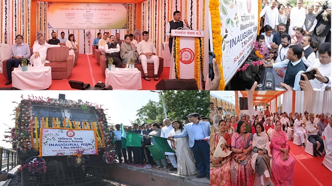 ભારત સરકારના કેન્દ્રીય શ્રમ, રોજગાર, યુવા બાબતો અને રમતગમત મંત્રી ડો. મનસુખ માંડવિયા, ગુજરાત સરકારના વન અને પર્યાવરણ, આબોહવા પરિવર્તન, વિજ્ઞાન અને ટેકનોલોજી મંત્રી અર્જુન મોઢવાડિયા, માનનીય સંસદસભ્ય પૂનમબેન માડમ, સંસદસભ્ય રામભાઈ મોકરિયા તથા અન્ય ગણમાન્ય અતિથિઓ દ્વારા 14 નવેમ્બર, 2025ના રોજ રાજકોટ રેલવે સ્ટેશનથી રાજકોટ-પોરબંદર વચ્ચે દોડનારી ઉદ્ઘાટન સ્પેશિયલ ટ્રેનને લીલી ઝંડી બતાવીને શુભારંભ કરવામાં આવ્યો હતો. કાર્યક્રમની શરૂૂઆતમાં રાજકોટ ડિવિઝન રેલવે મેનેજર ગિરિરાજ કુમાર મીનાએ ઉપસ્થિત તમામ ગણમાન્ય અતિથિઓનું સ્વાગત કર્યું.