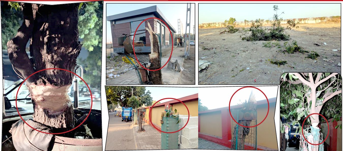 રાત્રીના અંધારામાં મજૂરોની ટીમ ઉતારી ફૂટપાથ ઉપર વાવેલા 4થી 10 વર્ષના વૃક્ષો કપાવી નાખ્યા