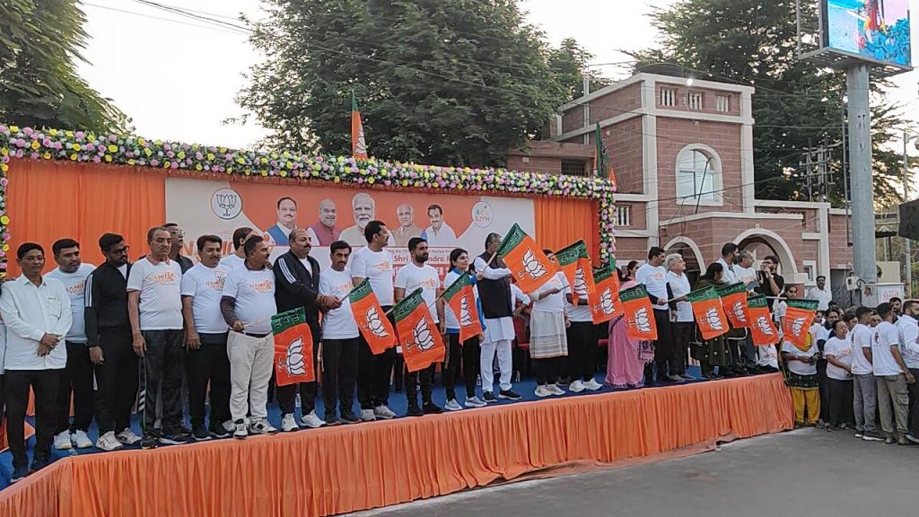 વડાપ્રધાન નરેન્દ્ર મોદીના જન્મદિવસ નિમિતે સેવા સપ્તાહની ઉજવણીના ભાગ રૂૂપે ભારતીય જનતા પાર્ટી યુવા મોરચા દ્વારા જામનગરમાં આજે મેરેથોનનું આયોજન કરવામાં આવ્યું હતું . જેમાં ભાજપના આગેવાનો અને નગરજ નો વિશાળ સંખ્યા માં જોડાયા હતા.