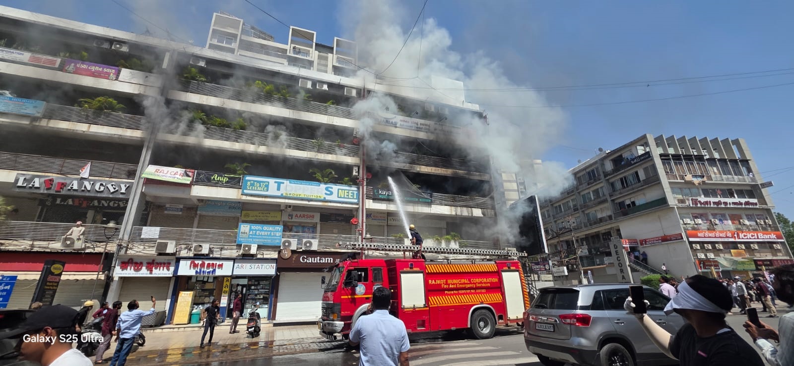 ઘટનાની જાણ થતા જ ફાયર બ્રિગેડની ત્રણ ટીમો તાત્કાલિક ઘટનાસ્થળે દોડી ગઈ હતી. જોકે, આગ એટલી ભીષણ હતી કે ફસાયેલા લોકો ભયભીત થઈ ગયા હતા અને બારીઓ પાસે આવીને બુમરાણ મચાવવા લાગ્યા હતા. લોકોના આક્રોશ વચ્ચે ફસાયેલા નાગરિકો ’બચાવો નહીંતર અમે નીચે પડીને જીવ દઈ દઈએ’ તેવા કરુણ આક્રંદ કરી રહ્યા હતા. આ હૃદયદ્રાવક દ્રશ્યો જોઈને નીચે ઉભેલા લોકોમાં પણ ભારે રોષ જોવા મળ્યો હતો. બચાવ કામગીરીમાં વિલંબ થતો હોવાનો આક્ષેપ કરી કેટલાક ઉત્તેજિત લોકો ફાયર વિભાગના અધિકારીઓ સાથે ઘર્ષણમાં ઉતર્યા હતા અને તેમને મારવા દોડ્યા હોવાની ચર્ચા પણ વહેતી થઈ હતી. સ્થિતિ વણસતા તાત્કાલિક પોલીસ કાફલો પણ ઘટનાસ્થળે ઉતારી દેવામાં આવ્યો હતો.