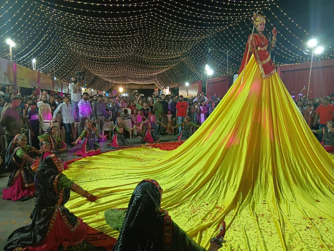 મોરબીમાં શક્તિ ચોક ગરબીમાં 50 ફૂટના ચણિયાચોળી પહેરી માતાજીના ગરબા