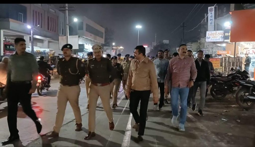 ખંભાળિયા વિસ્તારમાં કાયદો અને વ્યવસ્થાની પરિસ્થિતિ સાબુદ બને રહે તે હેતુથી જિલ્લા પોલીસ વડાની ઉપસ્થિતિમાં ગતરાત્રે મેગા ફૂટ પેટ્રોલિંગનું આયોજન કરવામાં આવ્યું હતું.