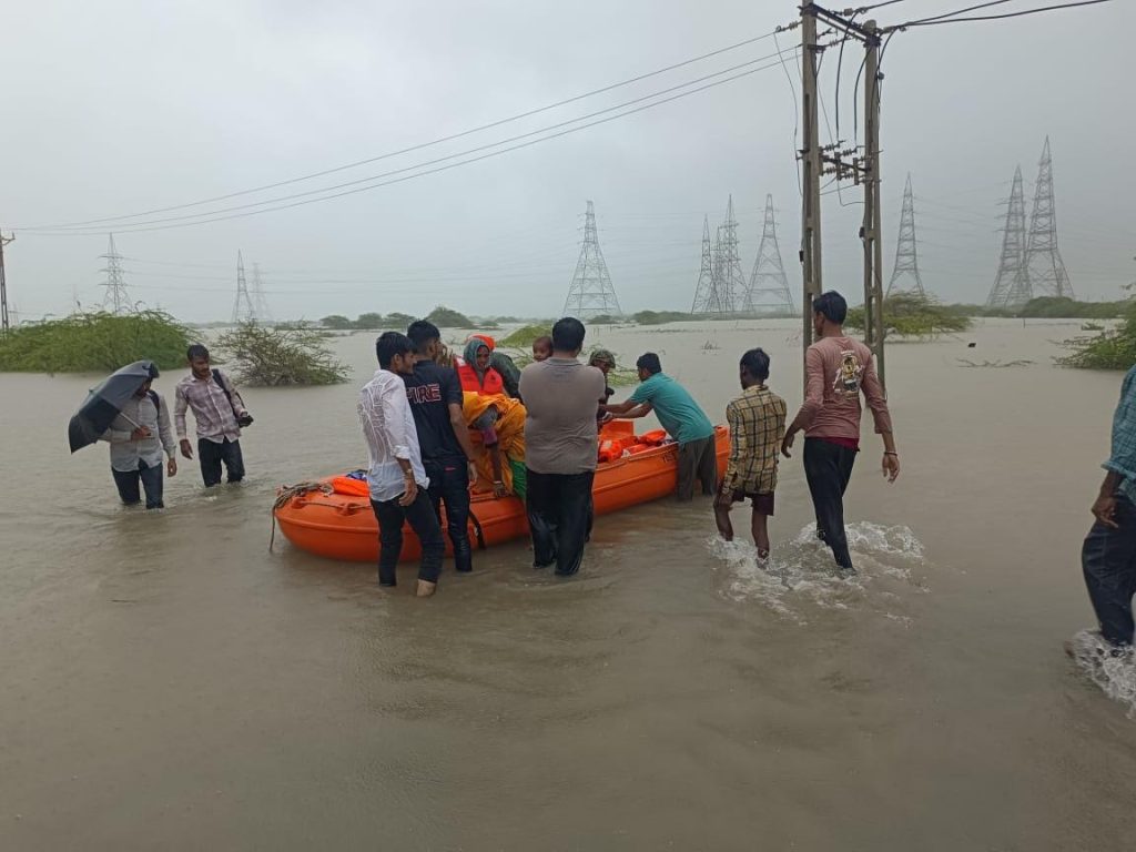છેલ્લા બે-ત્રણ દિવસના વરસાદના પગલે ખંભાળિયા શહેરને પાણી પૂરું પાડતાં ઘી ડેમમાં આશરે દોઢ ફૂટ જેટલું નવું પાણી આવ્યું છે અને 20 ફૂટના આ ડેમની સપાટી 16 ફૂટ સુધી પહોંચવા આવી છે. ડેમમાં આશરે 60 ટકા જેટલો પાણીનો જથ્થો સંગ્રહિત થઈ ચૂક્યો છે. આજે સવારે ખંભાળિયામાં ઉઘાડ વચ્ચે સૂર્યનારાયણના દર્શન થયા હતા. જિલ્લાના અન્ય વિસ્તારો કરતા ખંભાળિયા તાલુકામાં વરસાદની નોંધપાત્ર ઘટ પ્રવર્તી રહી છે. કલ્યાણપુર તાલુકાના ભોગાત ગામ પાસે એક બિલ્ડિંગમાં બુધવારના ભારે વરસાદના પગલે ચારેય તરફથી પાણી આવી જતા તેમાં 17 જેટલા સ્ત્રી, પુરુષ અને બાળકો ફસાઈ ગયા હતા. જે અંગેની જાણ ખંભાળિયા ફાયર સ્ટાફના અધિકારી મીતરાજસિંહ પરમારને કરવામાં આવતા ફાયર ટીમ દ્વારા તાત્કાલિક ઘટના સ્થળે પહોંચીને બોટ મારફતે આ તમામ 17 લોકોનું રેસ્ક્યુ કરીને સલામત જગ્યાએ ખસેડવામાં આવ્યા હતા. વરસાદના આંકડા ગઈકાલે બપોરે 12 વાગ્યાથી આજે સવારે 8 વાગ્યા સુધીના છે.