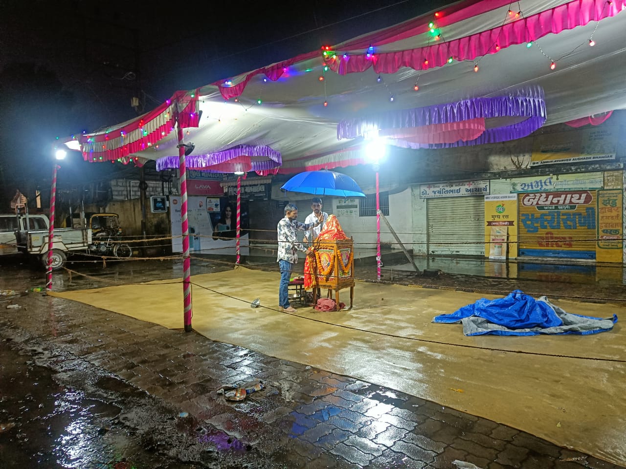 જો કે, મોડીરાત સુધી હળવો વરસાદ ચાલુ જ રહેતા મોટાભાગના રાસોત્સવો રદ કરાયા હતા જયારે કેટલાક રાસોત્સવમાં રાત્રે ખેલૈયાઓની પાંખી હાજરીમાં ઝરમરીયા વરસાદ વચ્ચે મેગા ફાઇનલ રમાડી ઇનામ વિતરણ કરાયા હતા અને રાસોત્સવો પૂર્ણ કરાયા હતા. પ્રાચીન ગરબીઓમાાં પણ મેઘરાજાએ વિક્ષેપ પાડ્યો હતો.